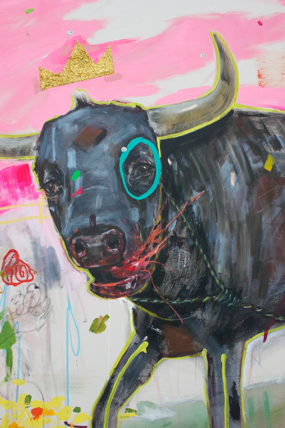 Acrylic, Glitter, Spray Paint on canvas